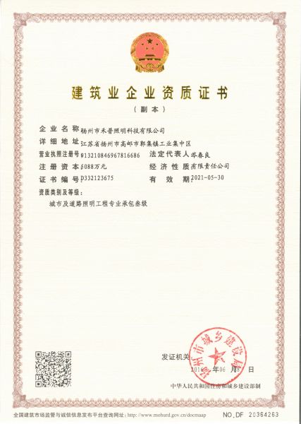| 资质单位: 扬州市禾普照明科技有限公司 |