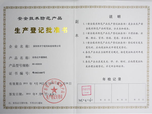 | 持证单位: 开宁视讯(中国)有限公司 |