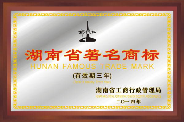 资质名称: 湖南名牌 |