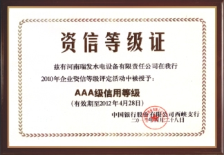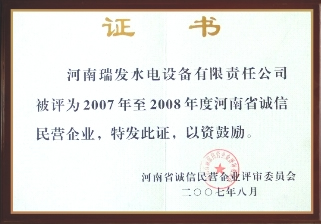 | 持证单位: 河南瑞发水电设备有限责任公司 |