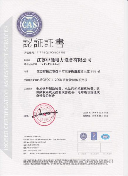 江苏中能电力设备有限公司(原扬中市中能电力有限公司)成立于1996年10月(1999年12月经有关部门批准升格为江苏中能电力设备有限公司),在 江苏省扬中市登记,公司性质为有限责任,注册资金2000万元,建筑面积14000平方米。公司拥有以教授级高工为首,职称、年龄和学历结构合理的研发、 生产队伍,主要经营范围是电站高效节能环保设备及配件的设计、制造和销售,相关技术咨询及服务。公司具有较强的科研、生产、设备制造、工程管理等能力,经 过几年的努力,完成了国家火炬计划项目、省级火炬计划项目及国家重点新产品推广项目等12项,获得国家专利12项,取得了很好科研成果和工程业绩,为我国 电力工业的发展作出了贡献。公司于1999年9月通过ISO9001国际质量体系认证,“中能”商标于2004年被认定为江苏省著名商标。其中“智能化凝 汽器胶球清洗装置”被认...... [ 查看详情 ]