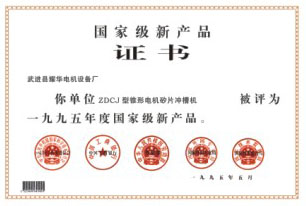 国家级新产品证书1