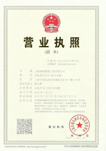 上海福银钢筋工程有限公司 网站由中国水电招标网制做维护。内容真实性及解释权归上海福银钢筋工程有限公司 负责。