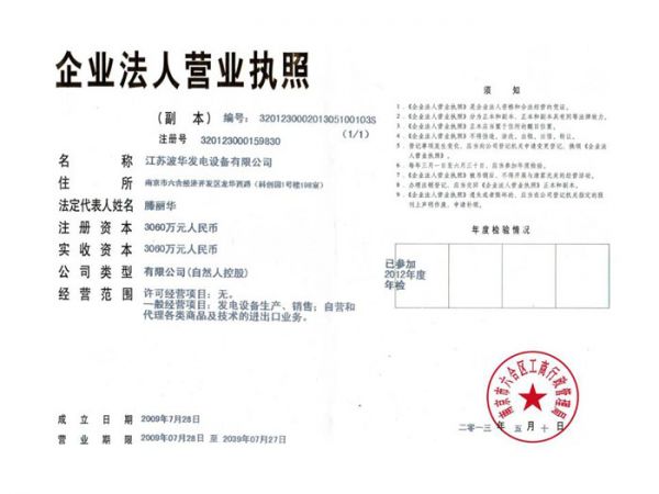 江苏波华发电设备有限公司网站由中国水电招标网制做维护。内容真实性及解释权归江苏波华发电设备有限公司负责。