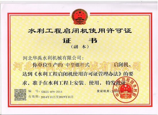 螺杆启闭机使用许可证